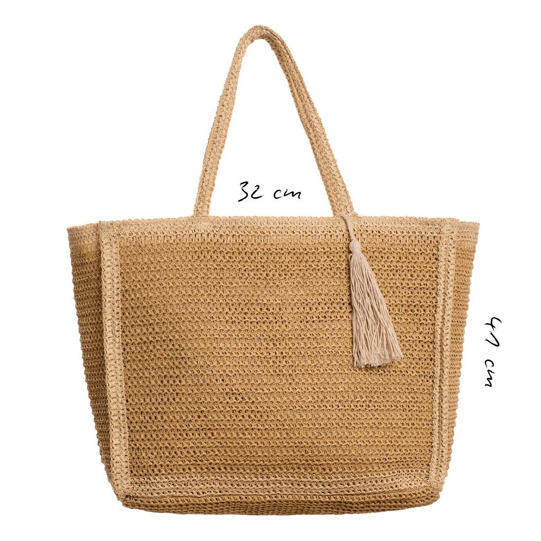 Spacious, lightweight, and with a natural style, this woven raffia bag with contrasting tassel is the perfect mix of practicality and charm.