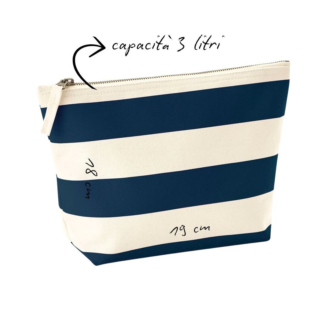 This pouch made of cotton canvas stands out for its striped design with a nautical feel, lively and timeless.