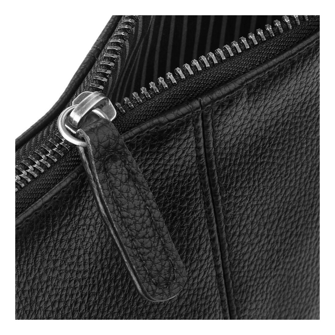 Essential lines and refined look for this flat faux leather pouch for men.