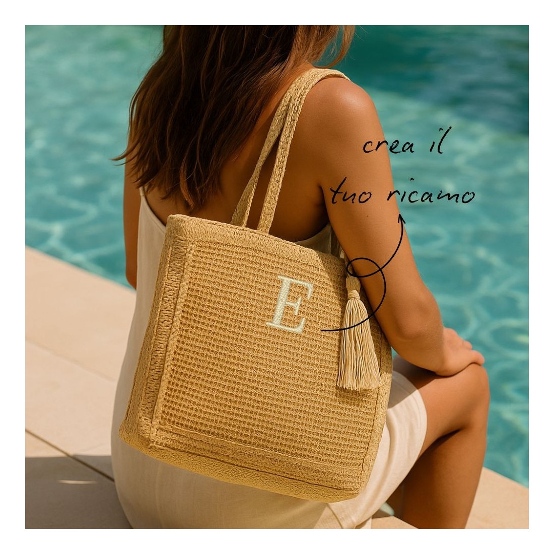 Dotata di manici comodi da spalla, è l'ideale da portare con sé insieme alla pochette abbinata per contenere l’essenziale.