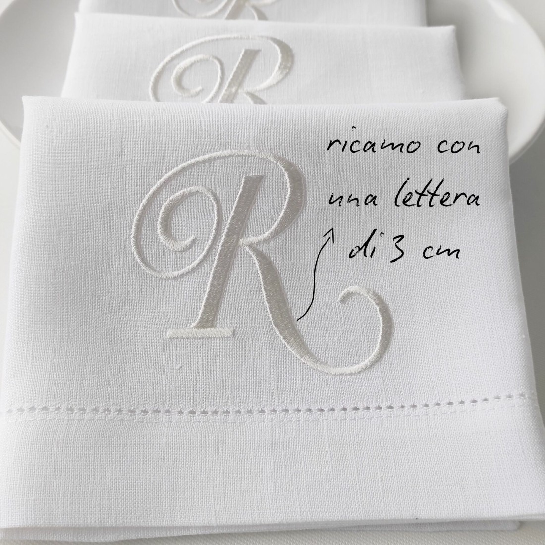 Il dettaglio distintivo è la cifra ricamata da 3 cm, per valorizzare la mise en place con un tocco essenziale ma di carattere.